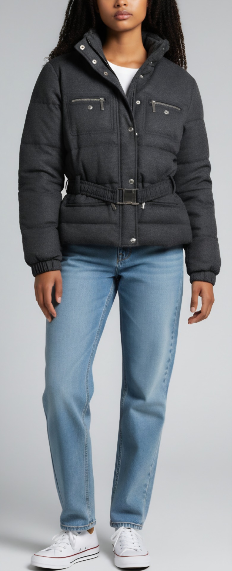 A gyönyörű steppelt dzseki, két oldalsó zsebbel és két felső zsebbel rendelkezik. Cipzáras és patentos záródással!