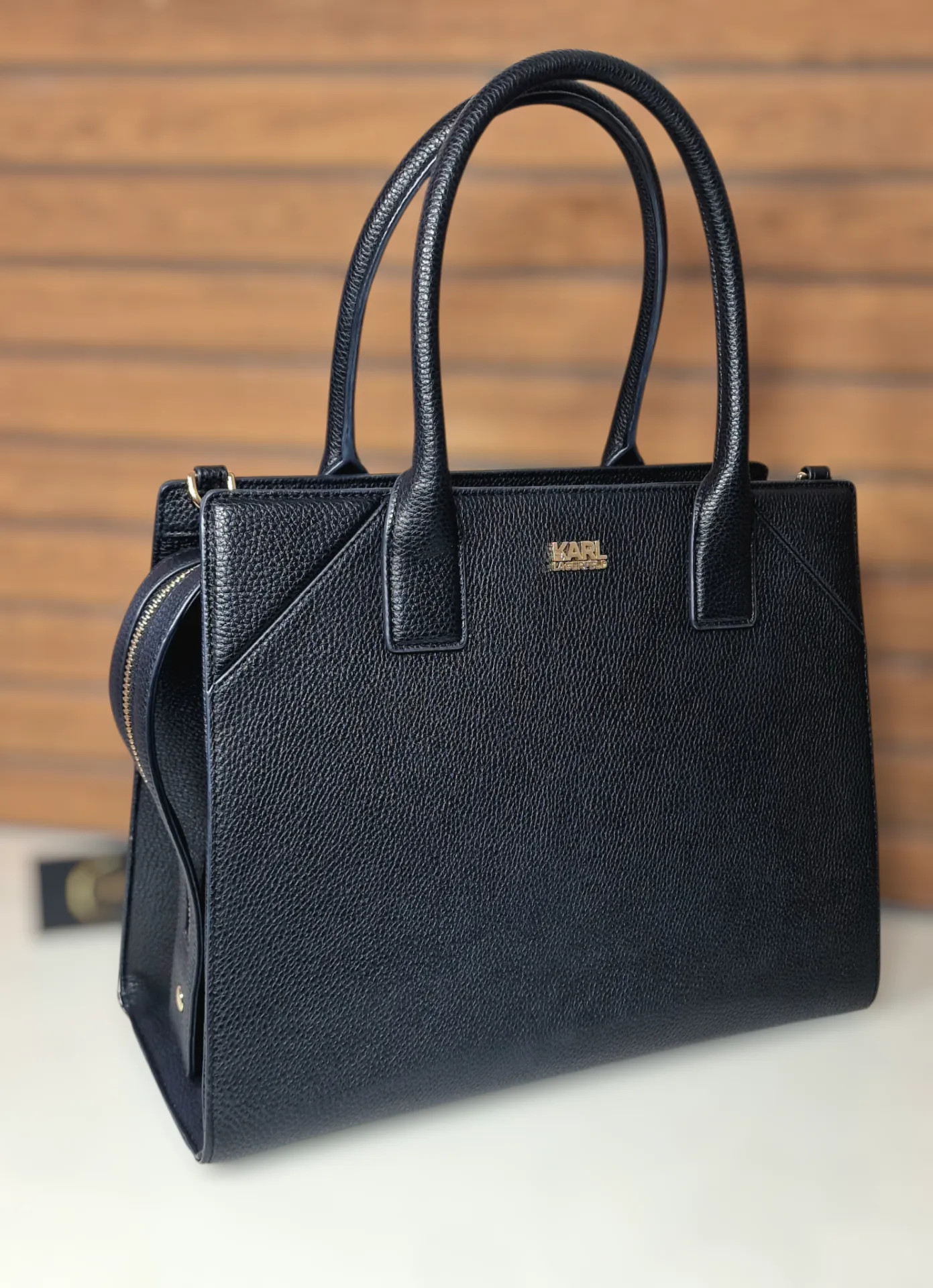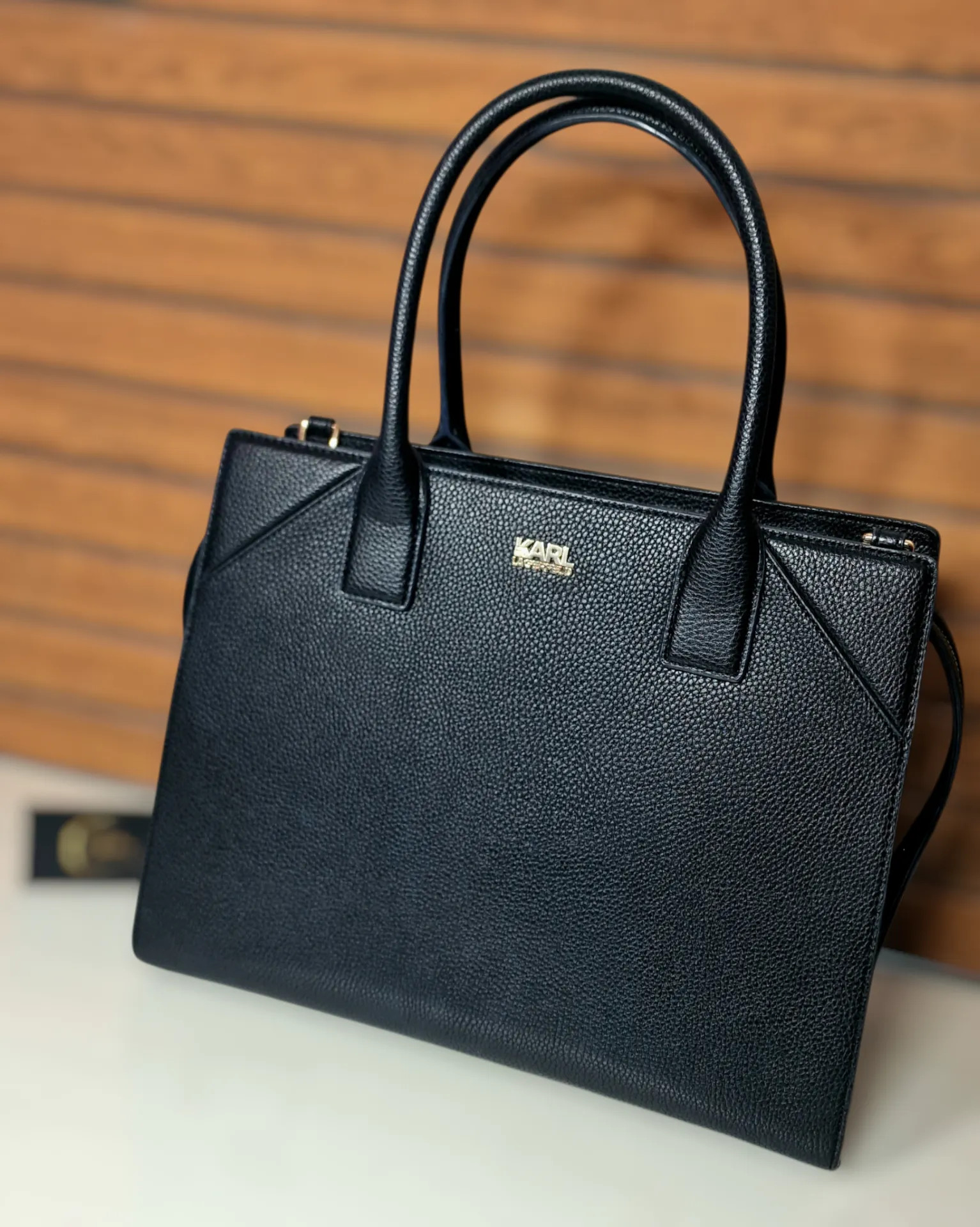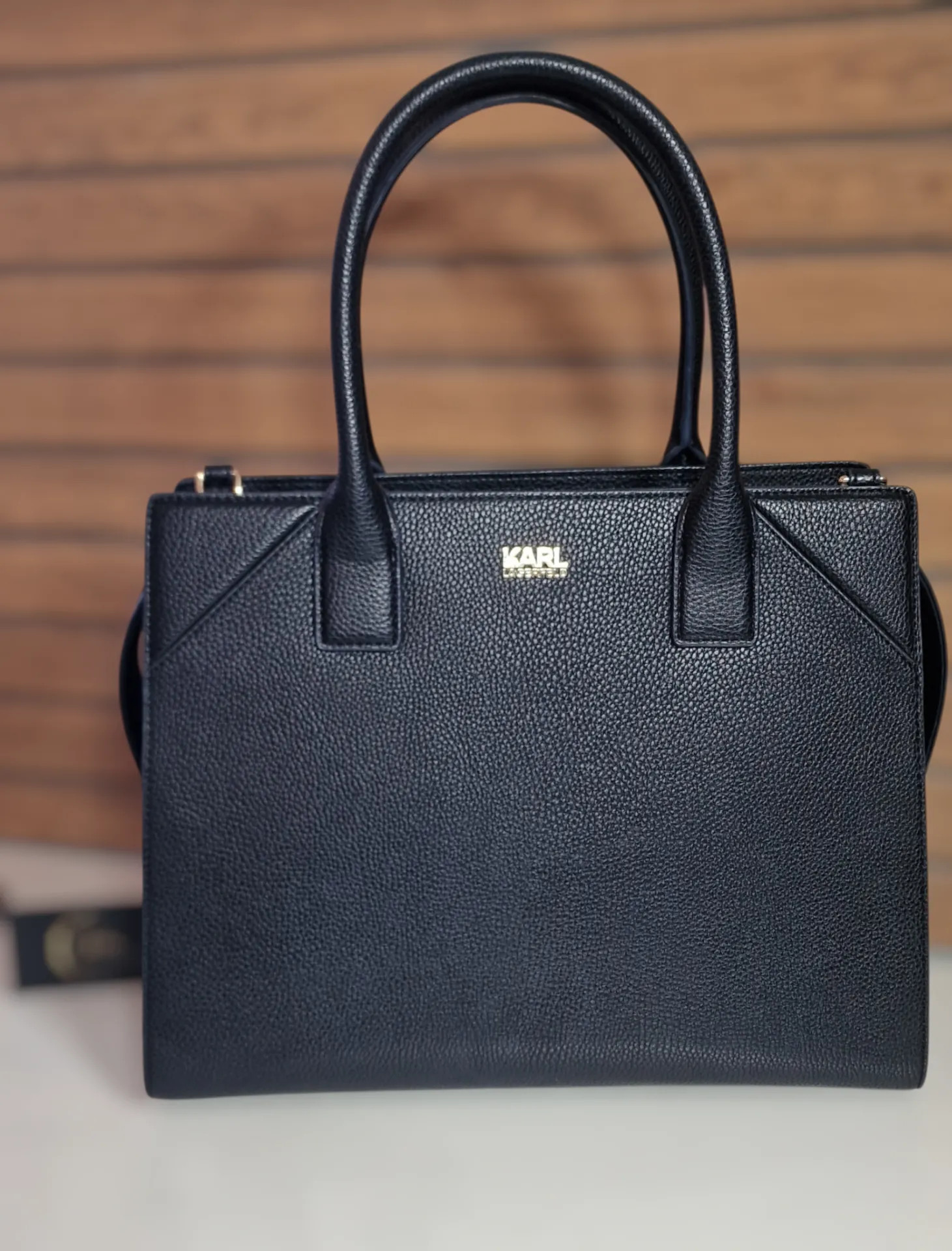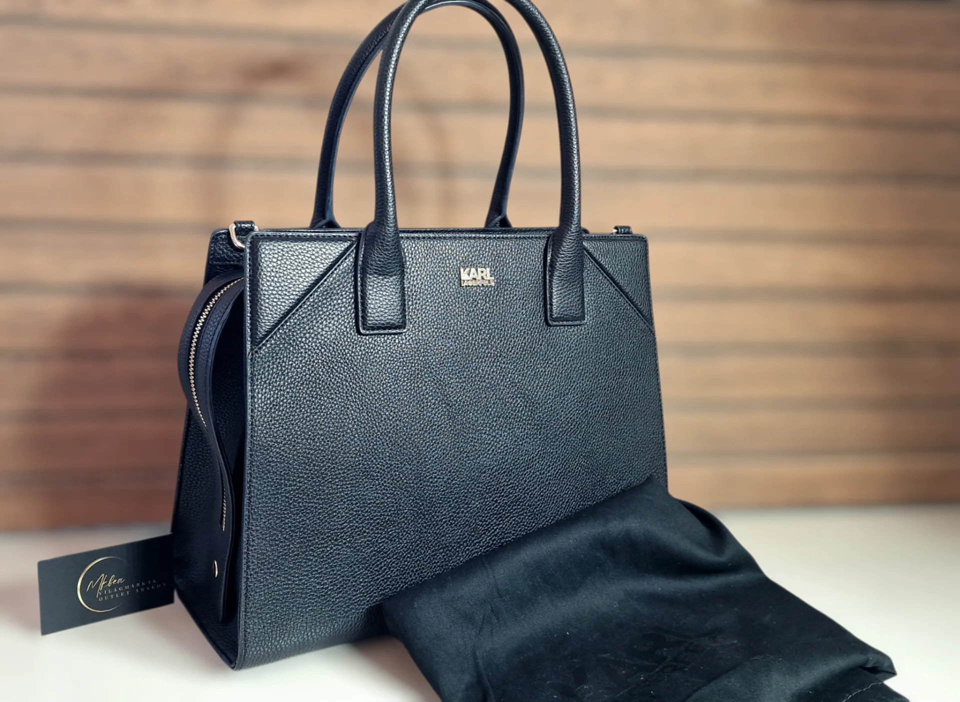 Eredeti Karl Lagerfeld kézitáska,válltáska-elegáns fekete kivitelben, letisztult vonalvezetéssel, amely egyszerre mutat prémium és modern hatást. Tágas belső kialakítása miatt nemcsak mutatós, hanem mindennapokra is kényelmes választás, porzsákkal együtt elérhető