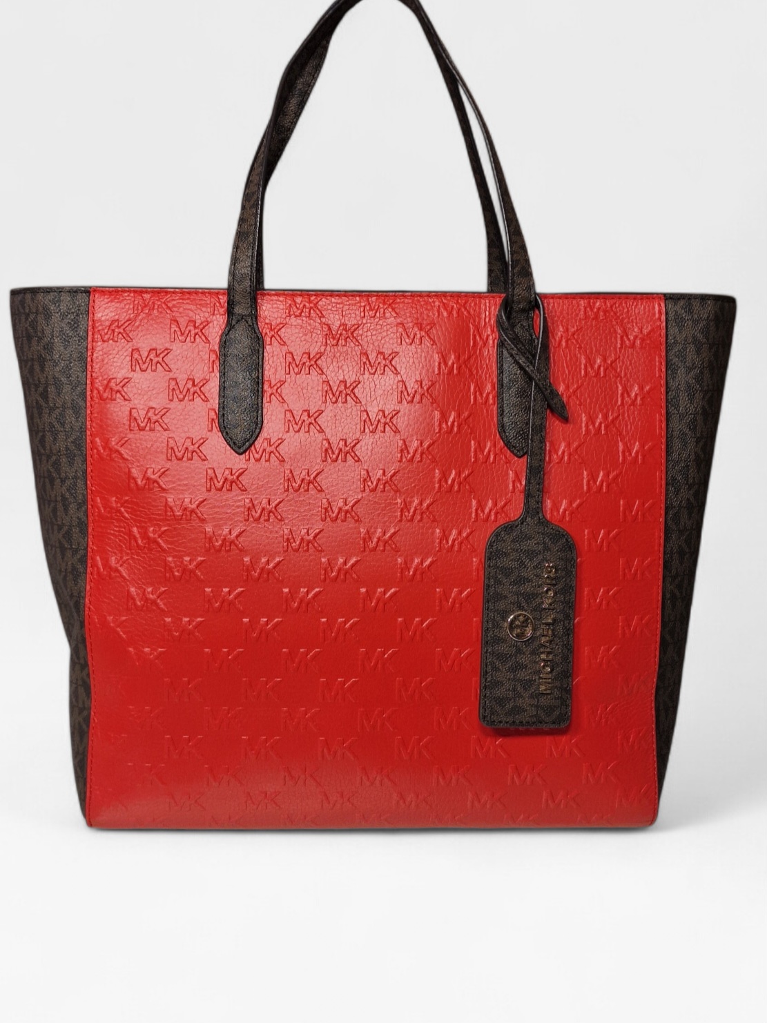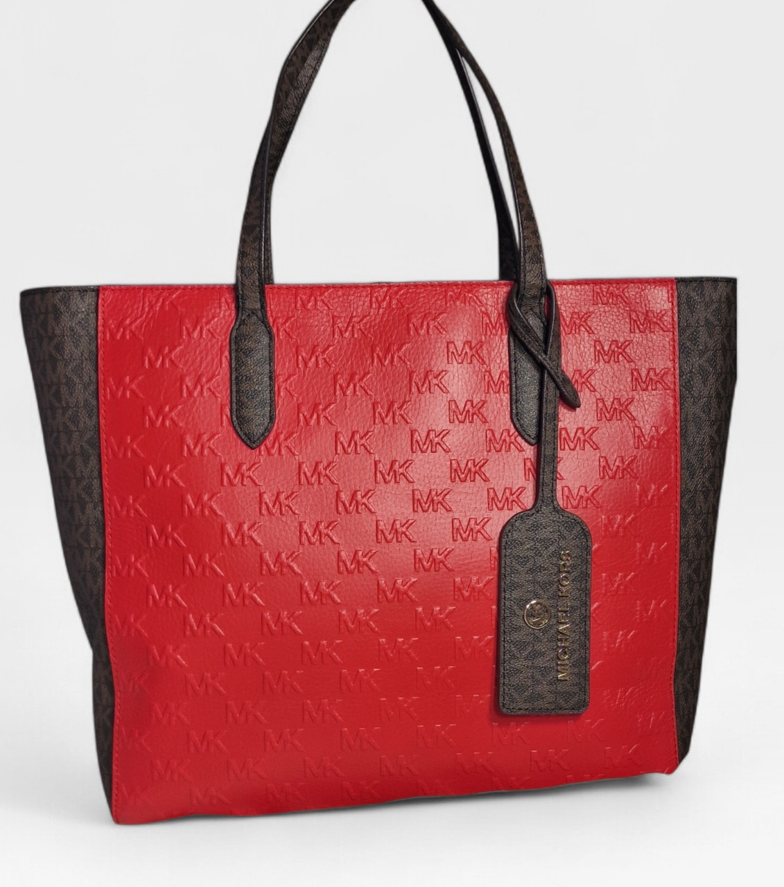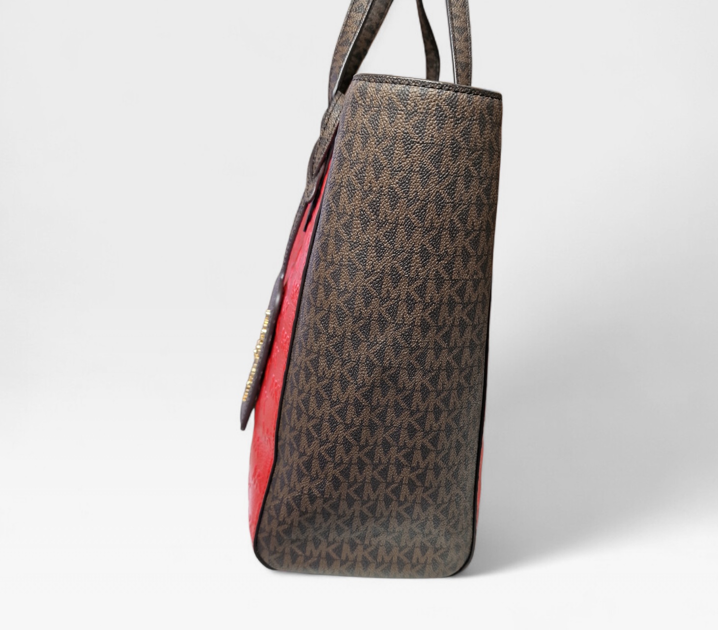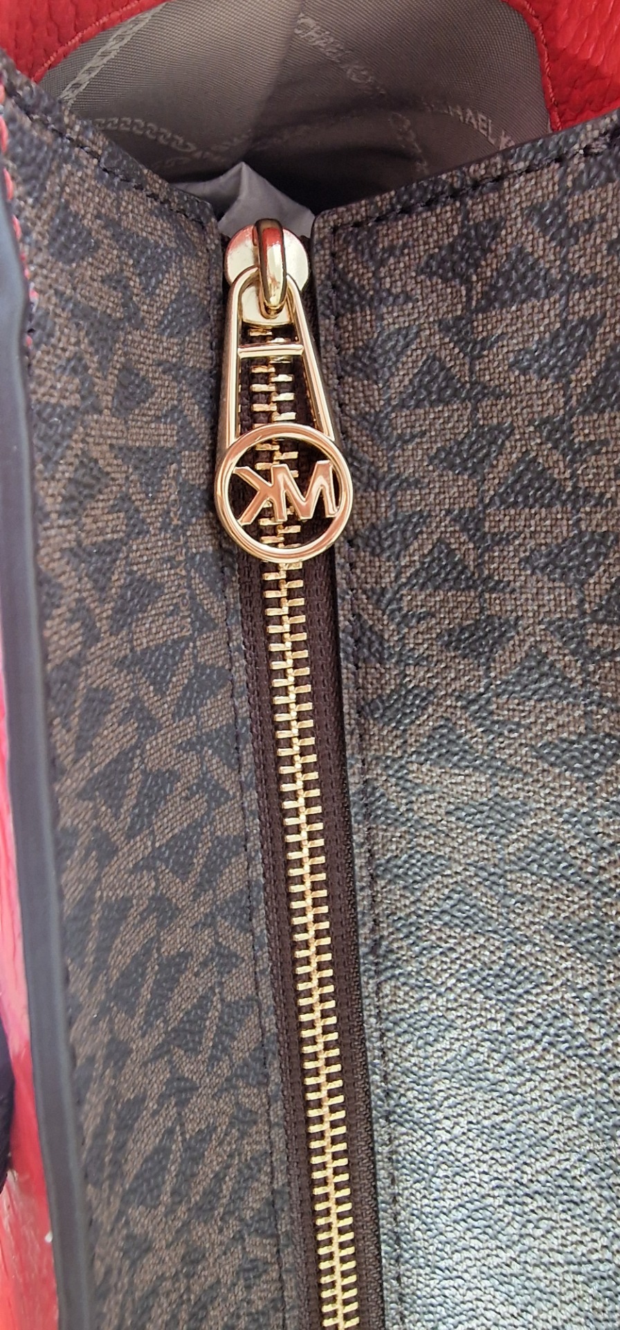 Eredeti Michael Kors válltáska, piros/barna színben- MK mintával