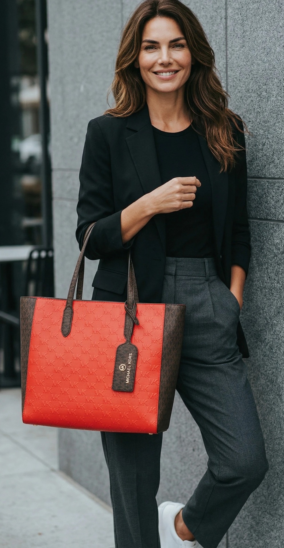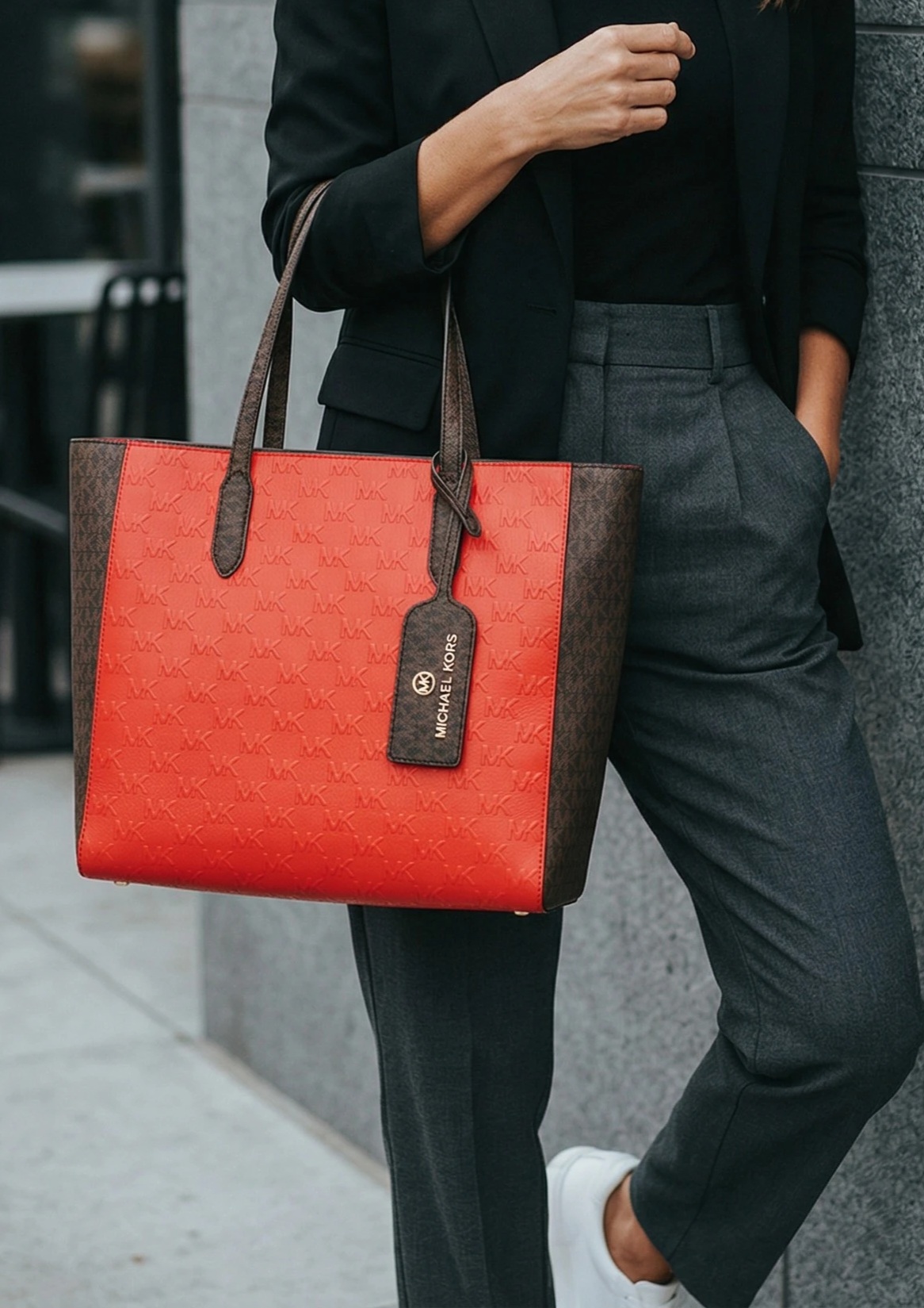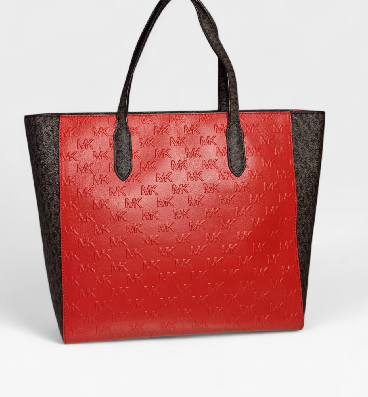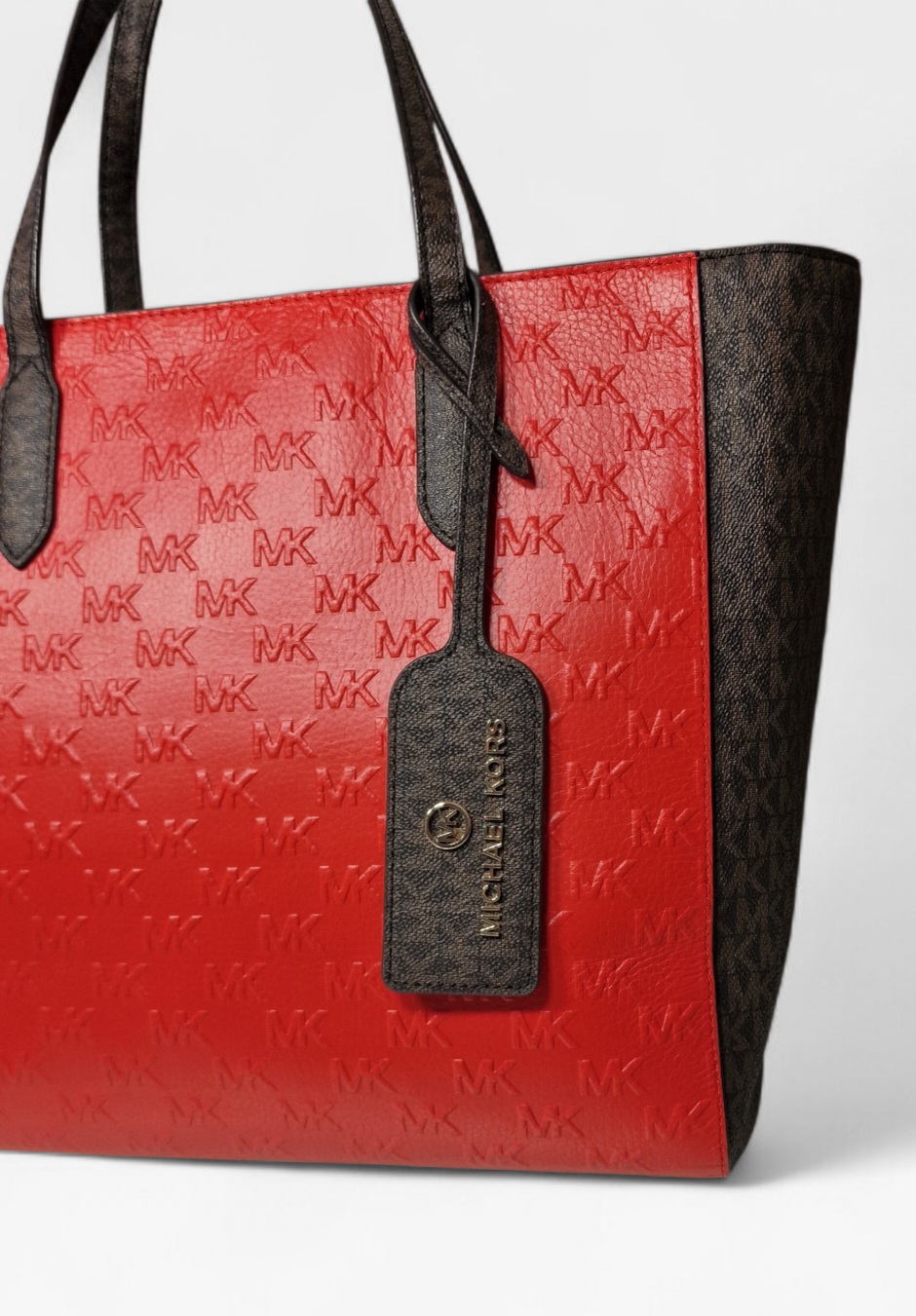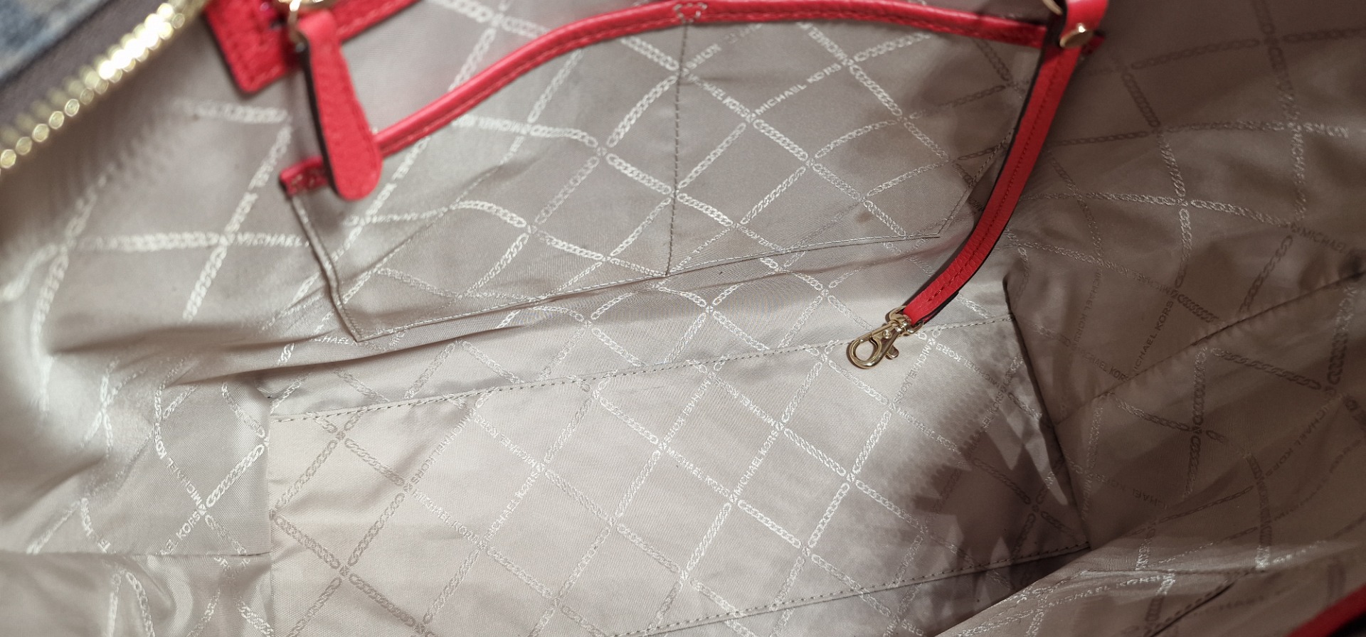 Eredeti Michael Kors válltáska, piros/barna színben- MK mintával