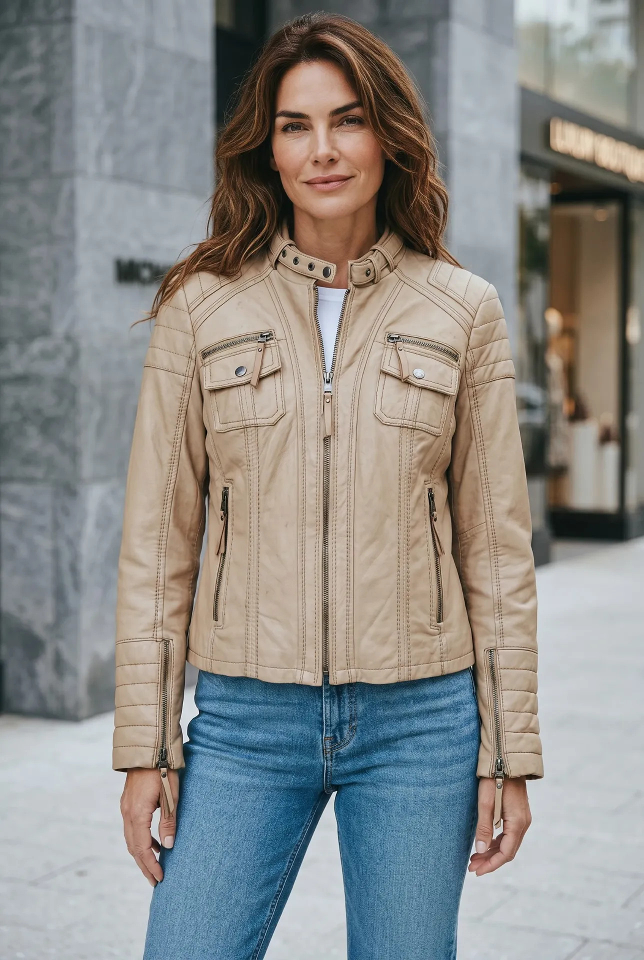 Kényelmes viselet, részletgazdag kialakítás, elegáns bézs árnyalat.